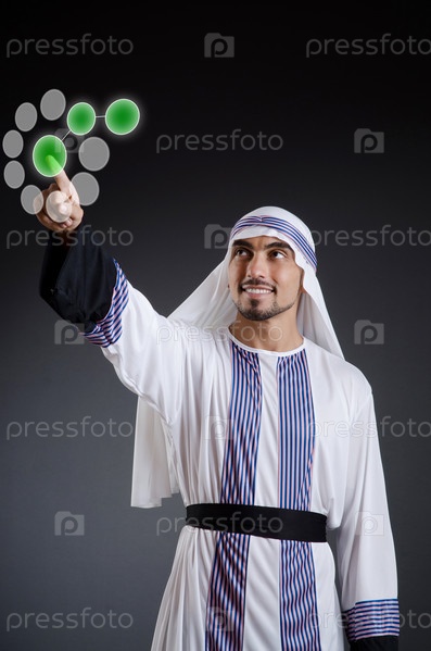 Арабский бизнесмен нажимает на виртуальные кнопки