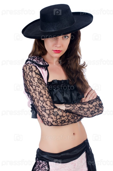Женщина тореадор, изолированная на белом фоне