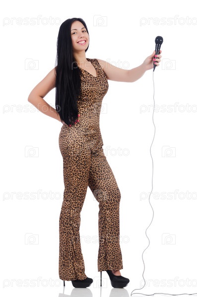Певица с микрофоном на белом фоне