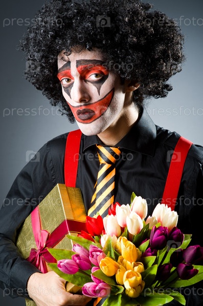 Печальный клоун с цветами