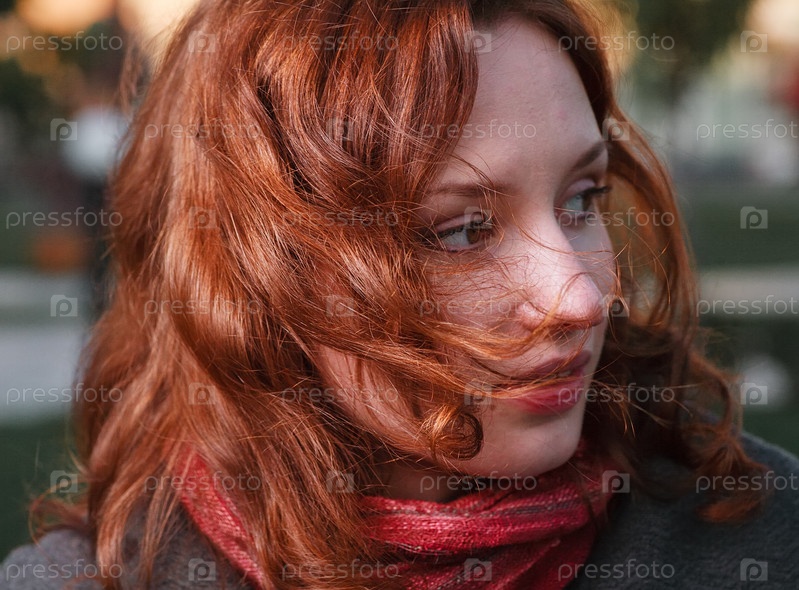 Рыжеволосая девушка на осенней улице