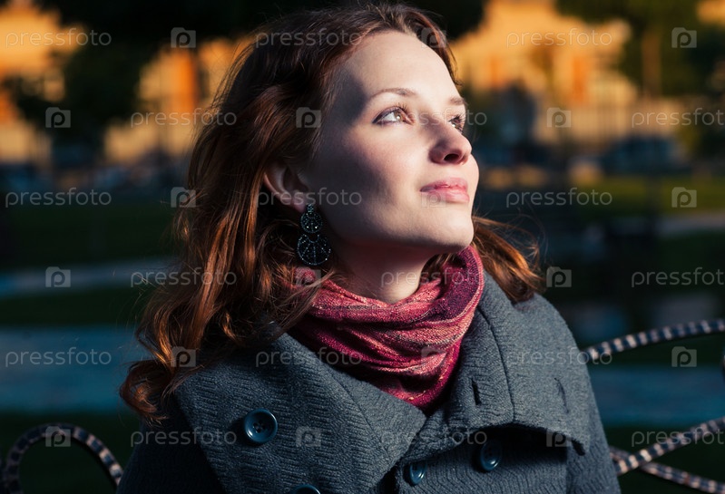Рыжеволосая девушка на осенней улице