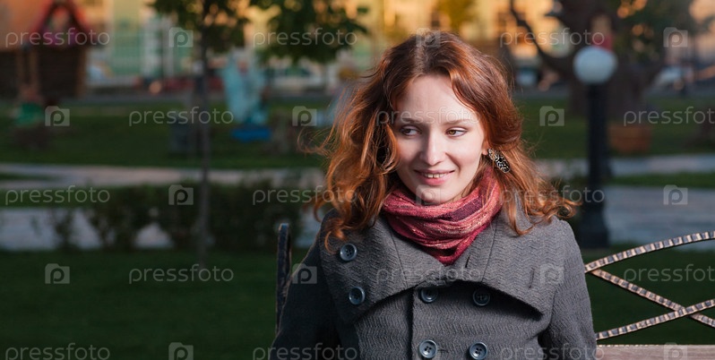 Рыжеволосая девушка на осенней улице