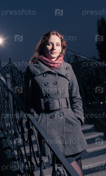 Рыжеволосая женщина на осенней улице