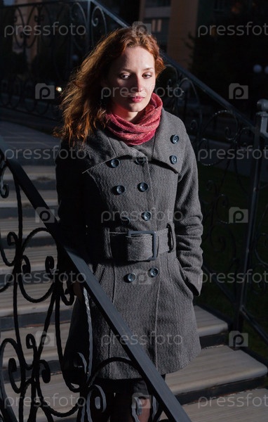 Рыжеволосая женщина на осенней улице