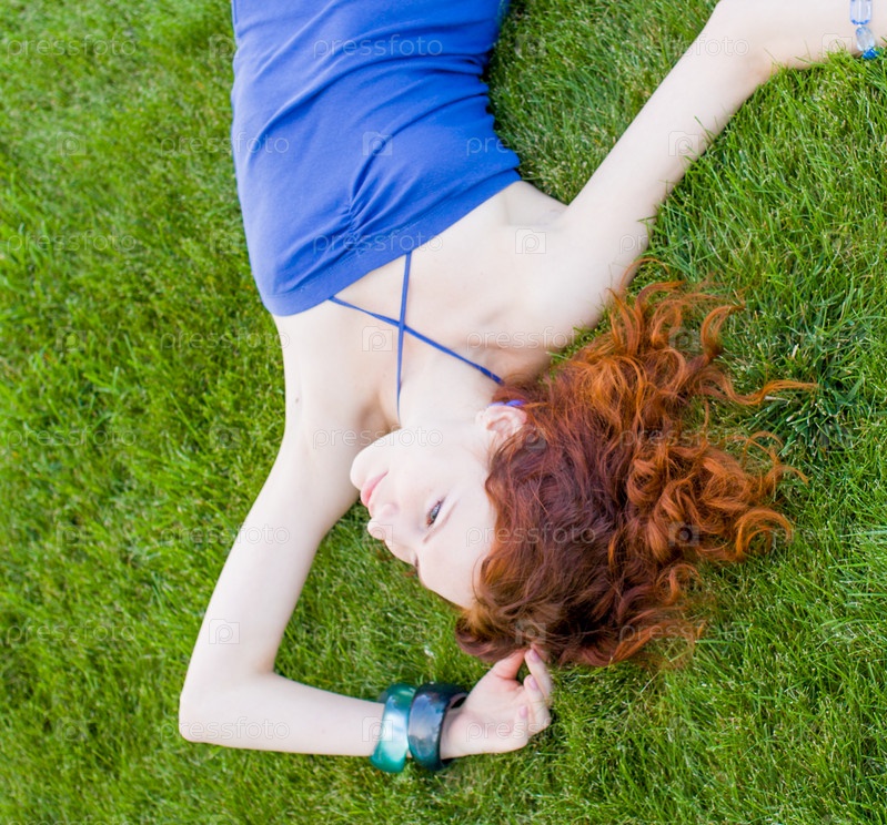 Рыжая женщина на свежей траве