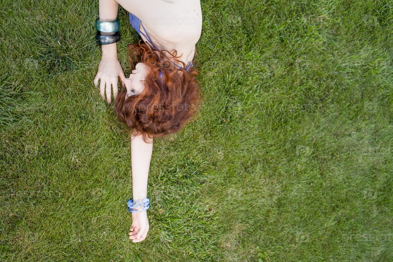 Рыжая женщина на свежей траве
