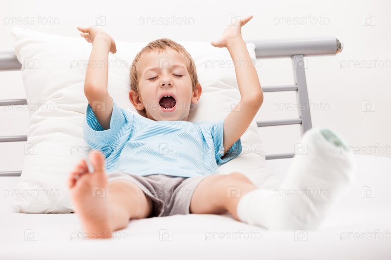 Мальчик с переломом пятки или ступни в гипсе