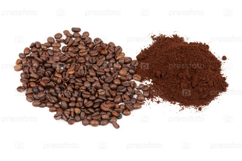 Молотый и зерновой кофе на белом фоне