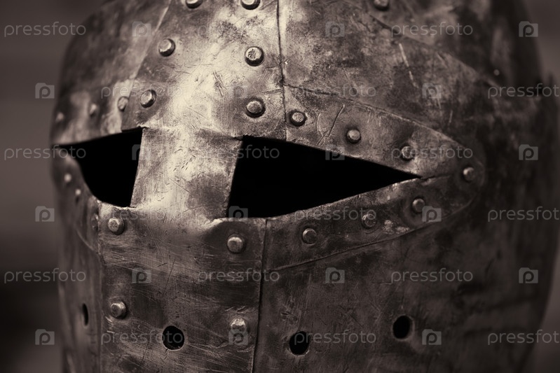 Средневековый рыцарский шлем, крупный план