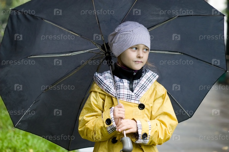 Милая девочка в желтом плаще