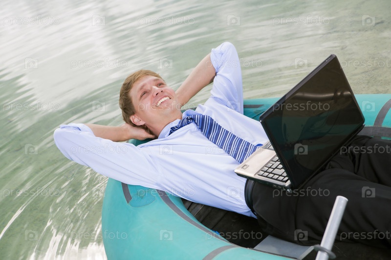 Человек отдыхает в лодке