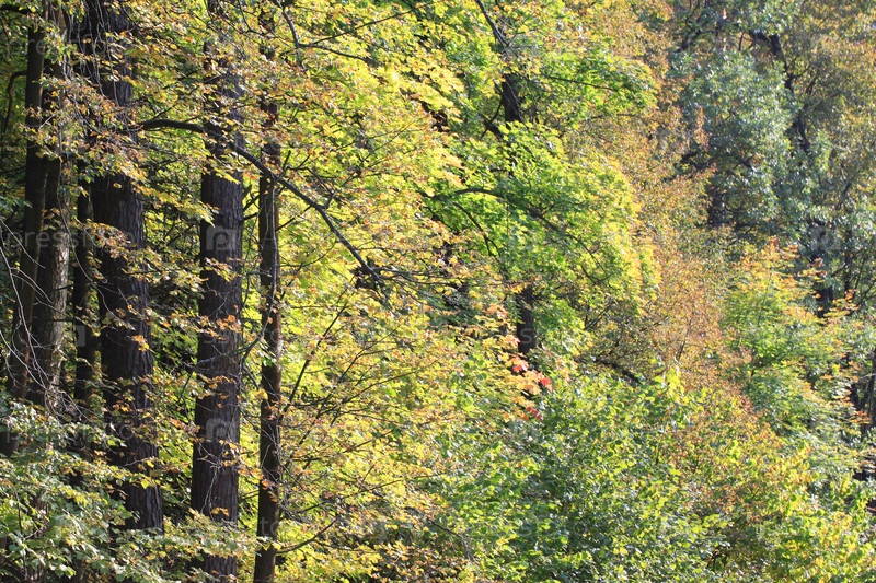 Желто-зеленый осенний лес