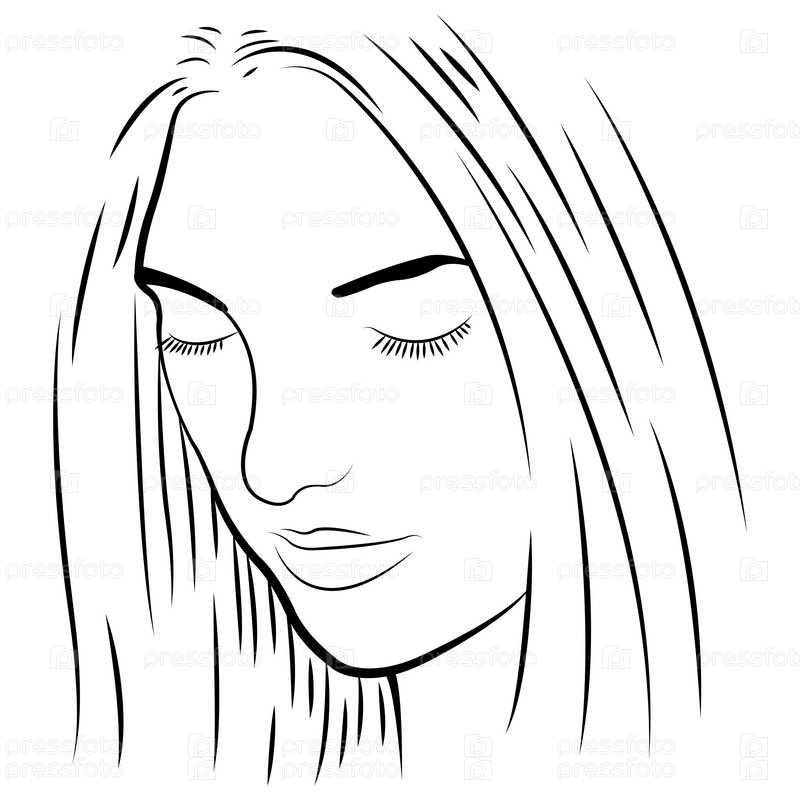 Черно-белая иллюстрация, красивая девушка