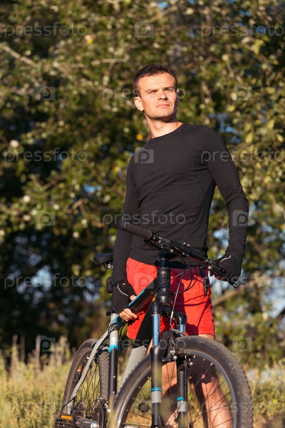 Парень с велосипедом ранним утром