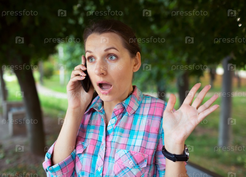 Женщина разговаривает по телефону в парке