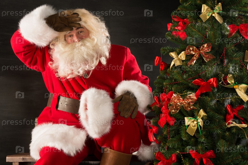 Санта-Клаус, усталый после доставки подарков для детей