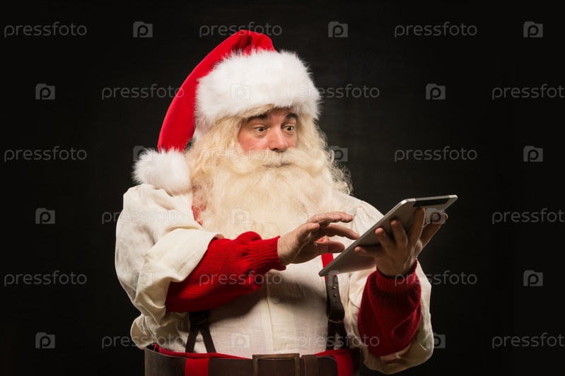Санта-Клауса с планшетным компьютером