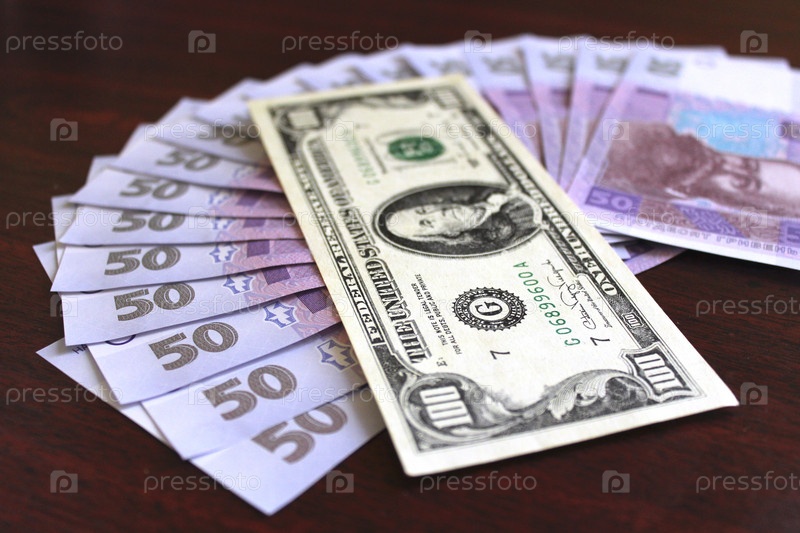 Доллар и гривны на темном фоне