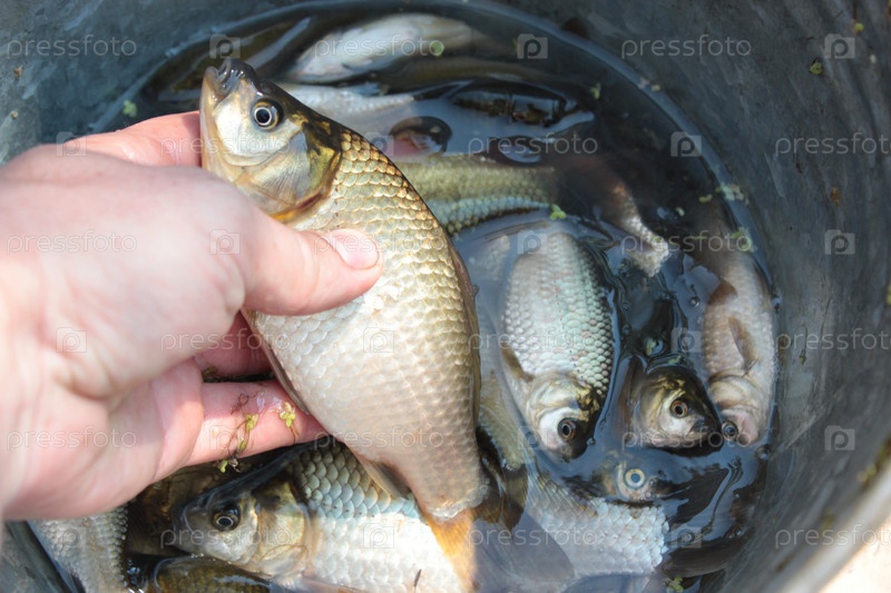 Пойманный большой карась в руке