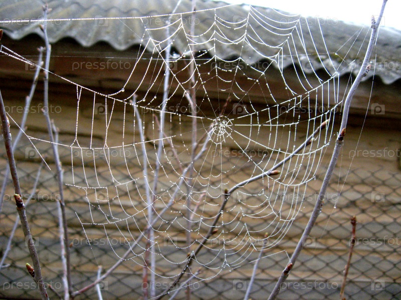 Красивая паутина с каплями росы