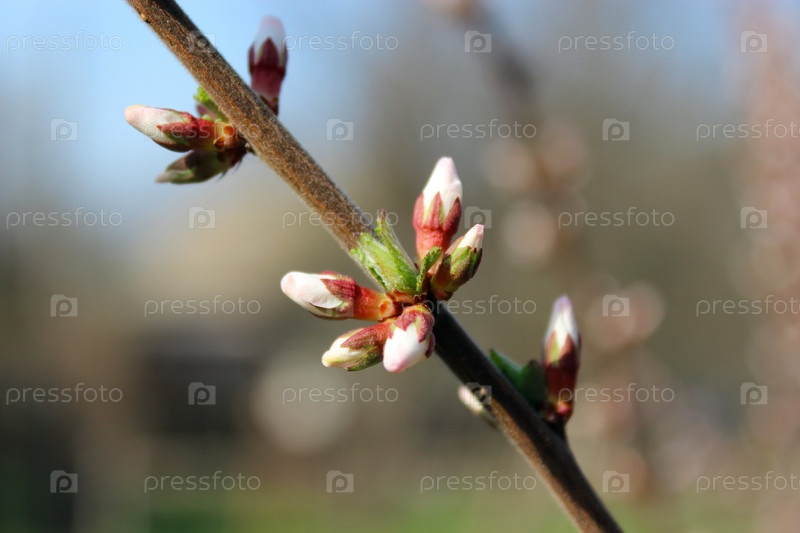 Нераскрытые бутоны китайской вишни рrunus tomentosa