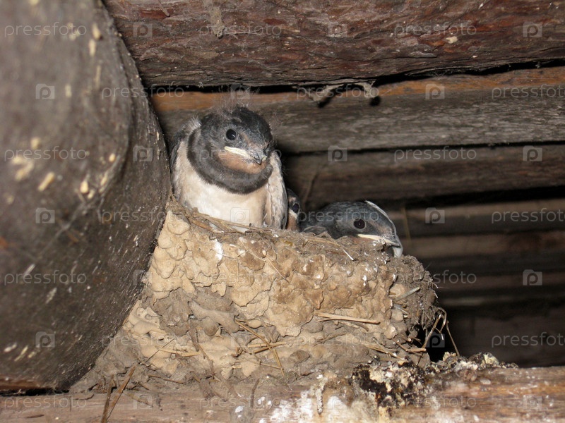 Гнездо ласточки с птенцами