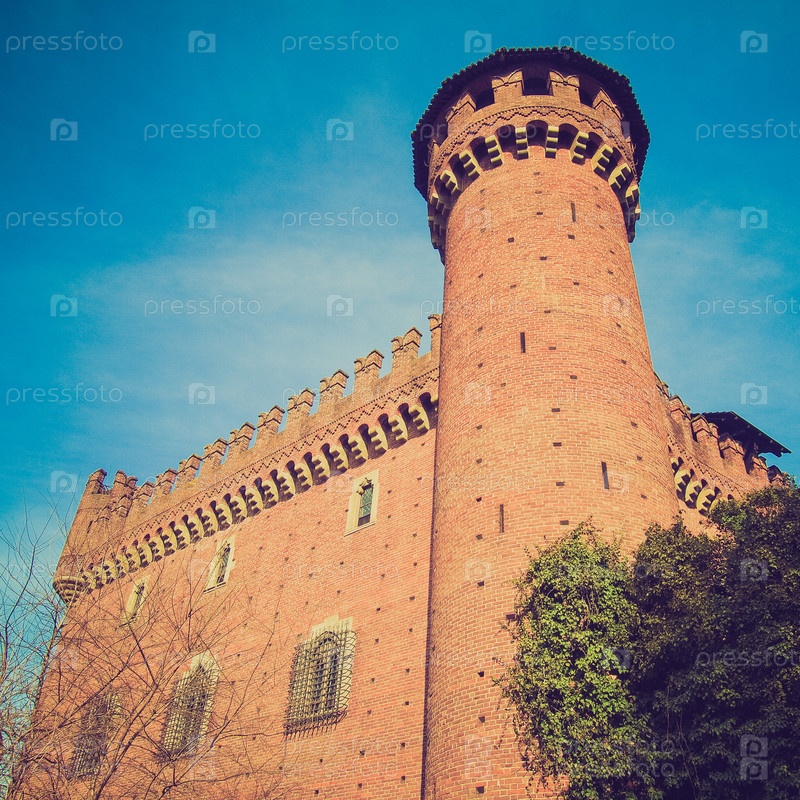 Средневековый замок, Турин, Италия. Винтажное изображение