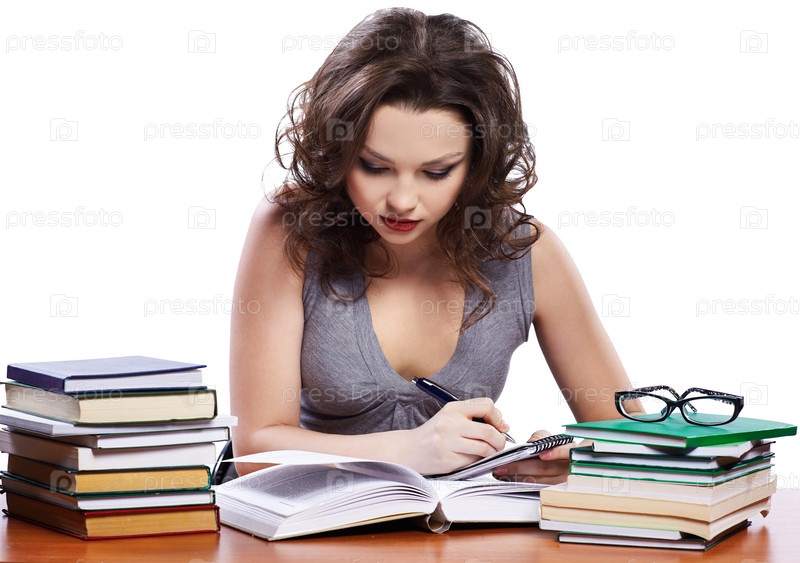 Студентка занимается в библиотеке