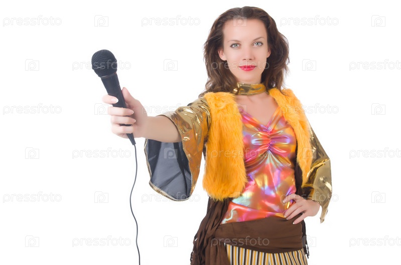 Женщина в испанской одежде с микрофоном