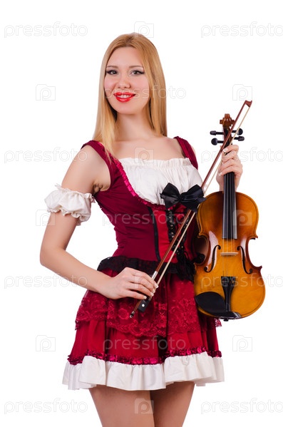 Девушка играет на скрипке на белом фоне