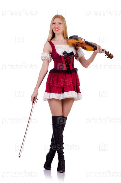 Девушка играет на скрипке на белом фоне