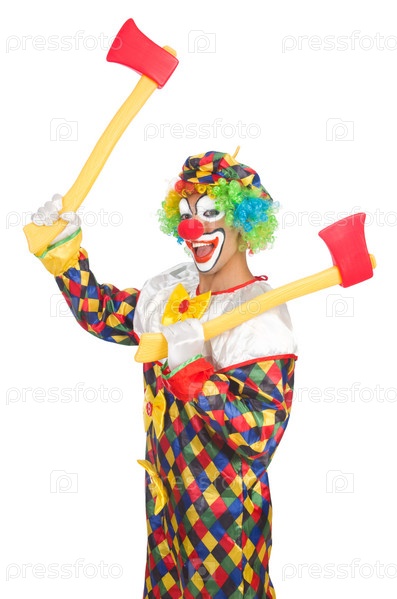 Клоун с топором, изолированный на белом фоне