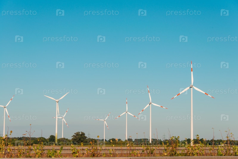 Ветряные мельницы в яркий летний день