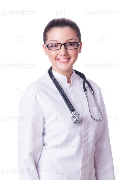 Женщина-врач, изолированная на белом фоне