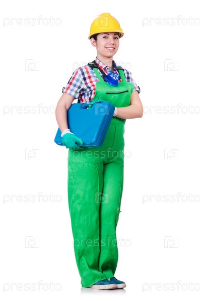 Молодая женщина в зеленом комбинезоне