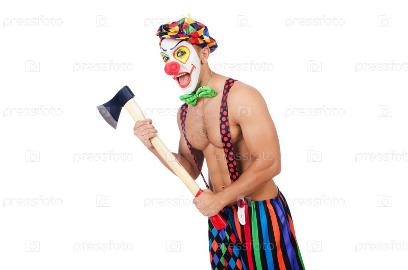 Клоун с топором, изолированный на белом фоне