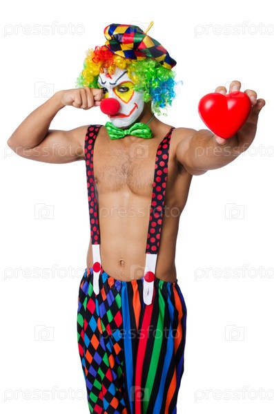 Клоун с сердцем, изолированный на белом фоне
