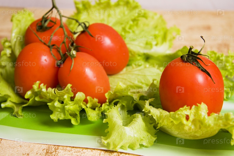 Красные помидоры и зеленый салат
