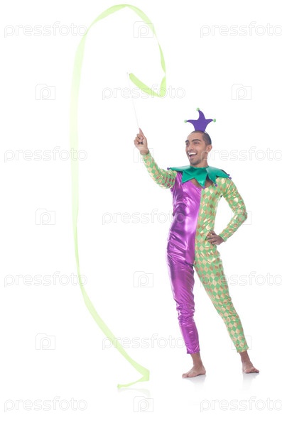 Клоун с лентой на белом фоне