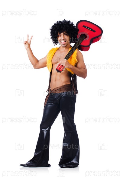Гитарист, изолированный на белом