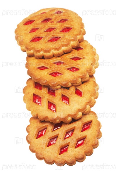 Печенье с фруктовым джемом на белом фоне