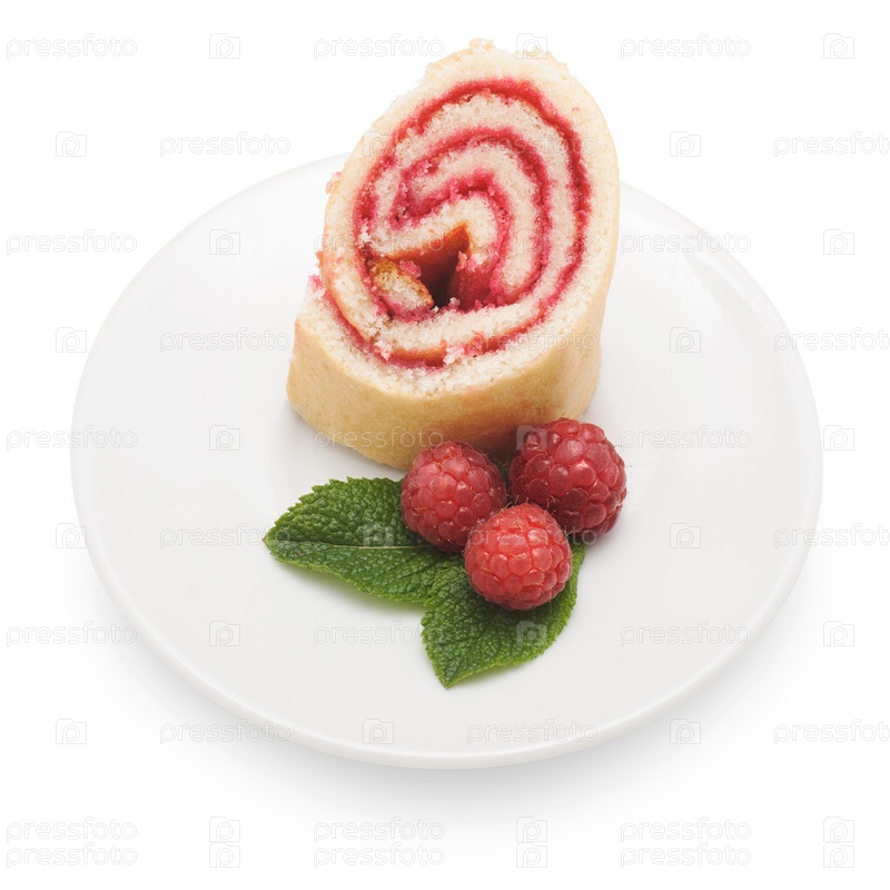 Сладкий рулет с ягодами, изолированный на белом фоне
