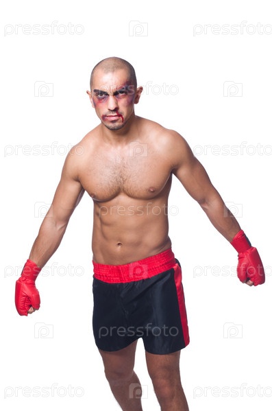 Избитый боксер, изолированный на белом фоне