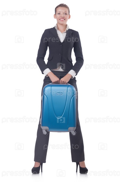 Путешествующая деловая женщина, изолированная на белом