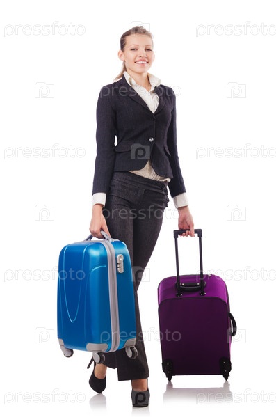 Путешествующая деловая женщина, изолированная на белом