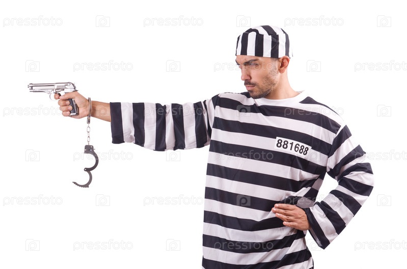 Заключенный с пистолетом, изолированный на белом фоне