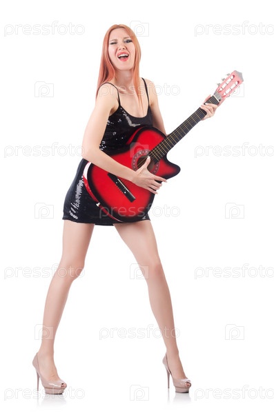 Гитаристка на белом фоне