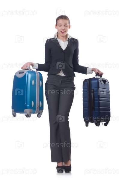 Путешествующая деловая женщина, изолированная на белом