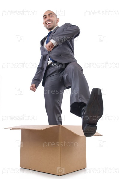 Бизнесмен с коробками, изолированный на белом